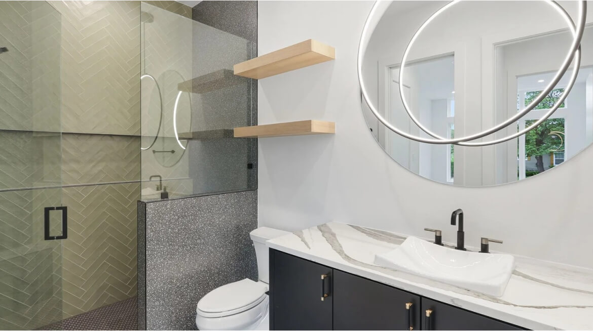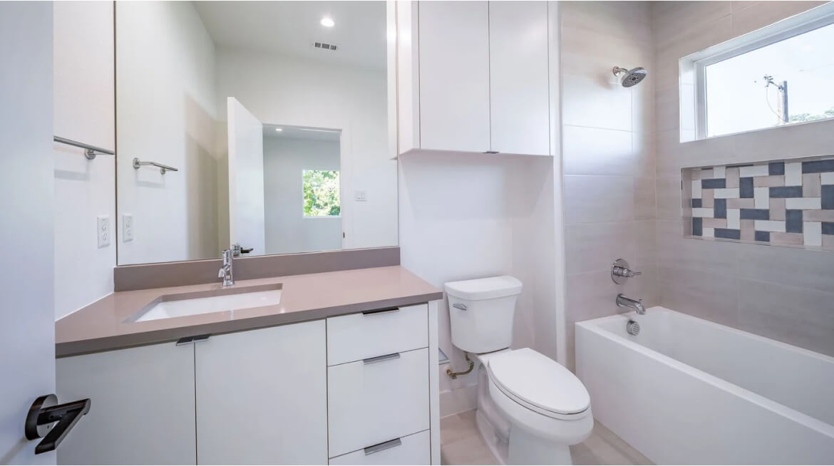 This bathroom remodeling project in Los Angeles, CA, transformed a traditional space into a modern, functional, and stylish bathroom. Our team upgraded the fixtures, installed premium countertops, and added energy-efficient lighting and plumbing to create a comfortable and elegant bathing experience.